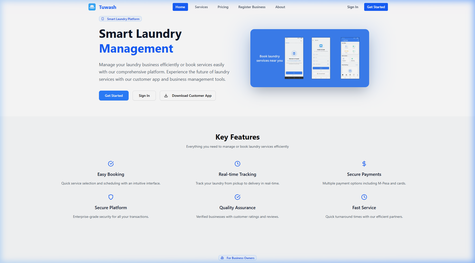A complete ecosystem designed to modernize dry-cleaning and laundry operations. Tuwash bridges the gap between doorstep convenience and industrial business control.